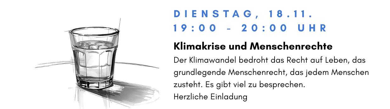 Klimakrise und Menschenrechte. Leben in Freiheit und Sicherheit ist grundlegendes Menschenrecht, das allen Menschen zusteht. Doch das macht der Klimawandel für Millionen von Menschen zunehmend unmöglich. Marie Luise Lauterbach, Mitglied bei Amnesty International, führt durch das Thema.