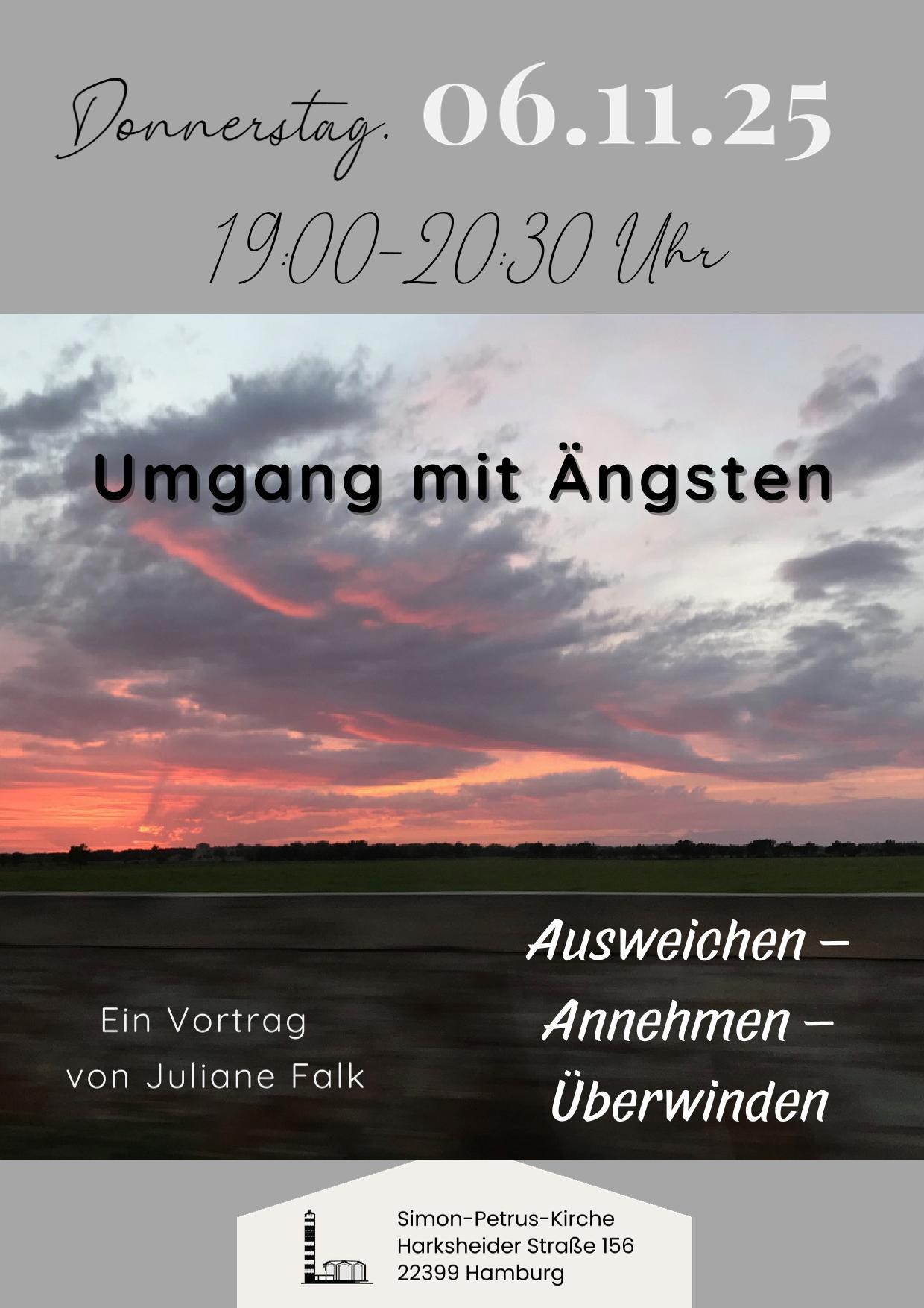 nun ist der Herbst da. Wunderschöne Tage und traumhafte Laubteppiche wechseln sich mit Nieselregen, Nebel und kalten Temperaturen ab. Zeit für einen Herbstspaziergang oder einen schönen Nachmittag mit heißem Tee und einem guten Buch. Aber es lohnt sich auch, in die Simon-Petrus-Kirche zu kommen. Im November haben wir zwei interessante Veranstaltungen für Sie geplant: Frau Juliane Falk hält wieder einen ihrer tollen Vorträge und Frau Marie Luise Lauterbach lädt zu einem Workshop zum Thema Klimakrise und Menschenrechte ein. Gerade in diesen Tagen, in denen die soziale Kälte passend zur Jahreszeit versucht, in unserem Land Fuß zu fassen, ein wichtiges Thema.